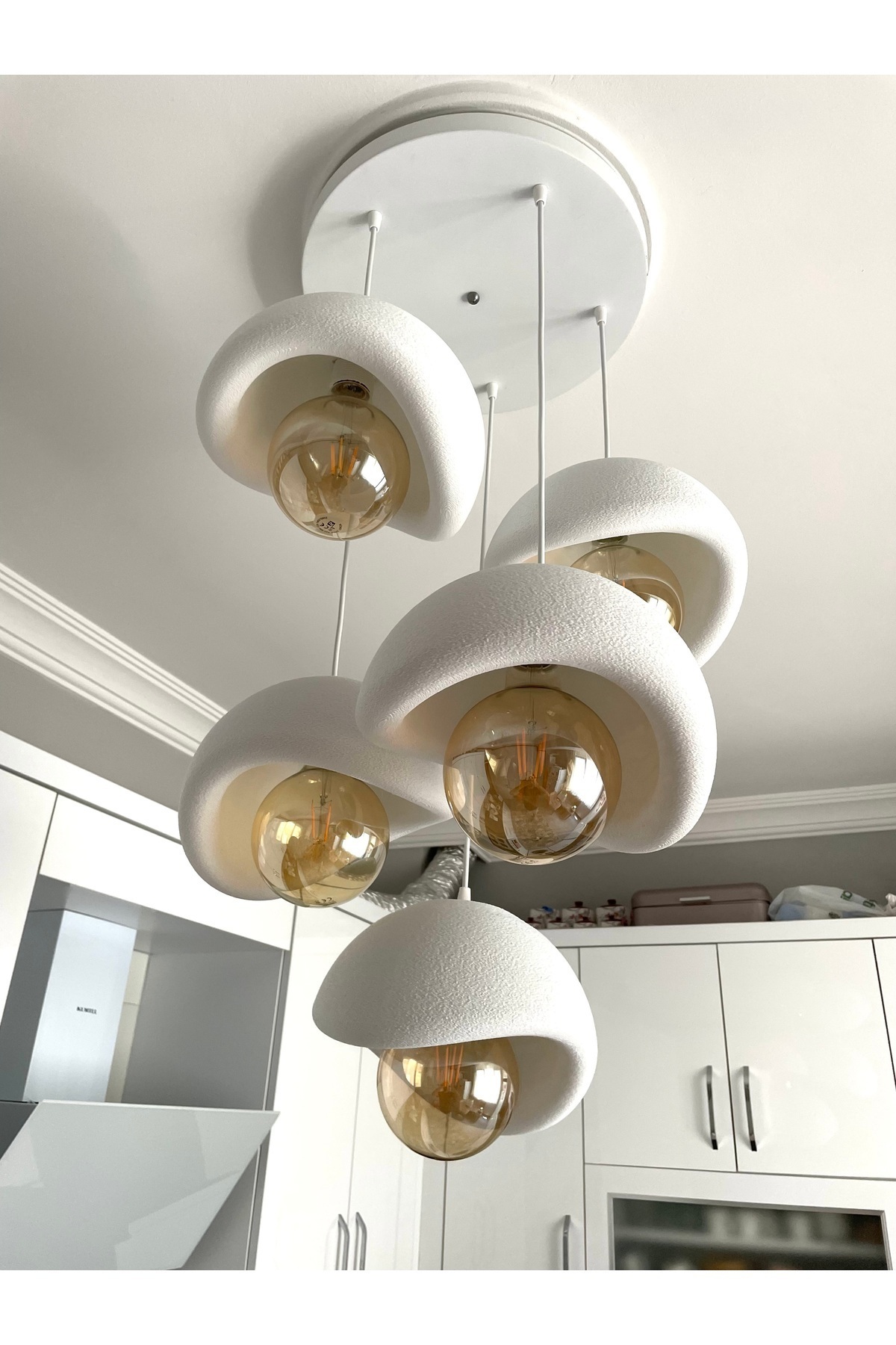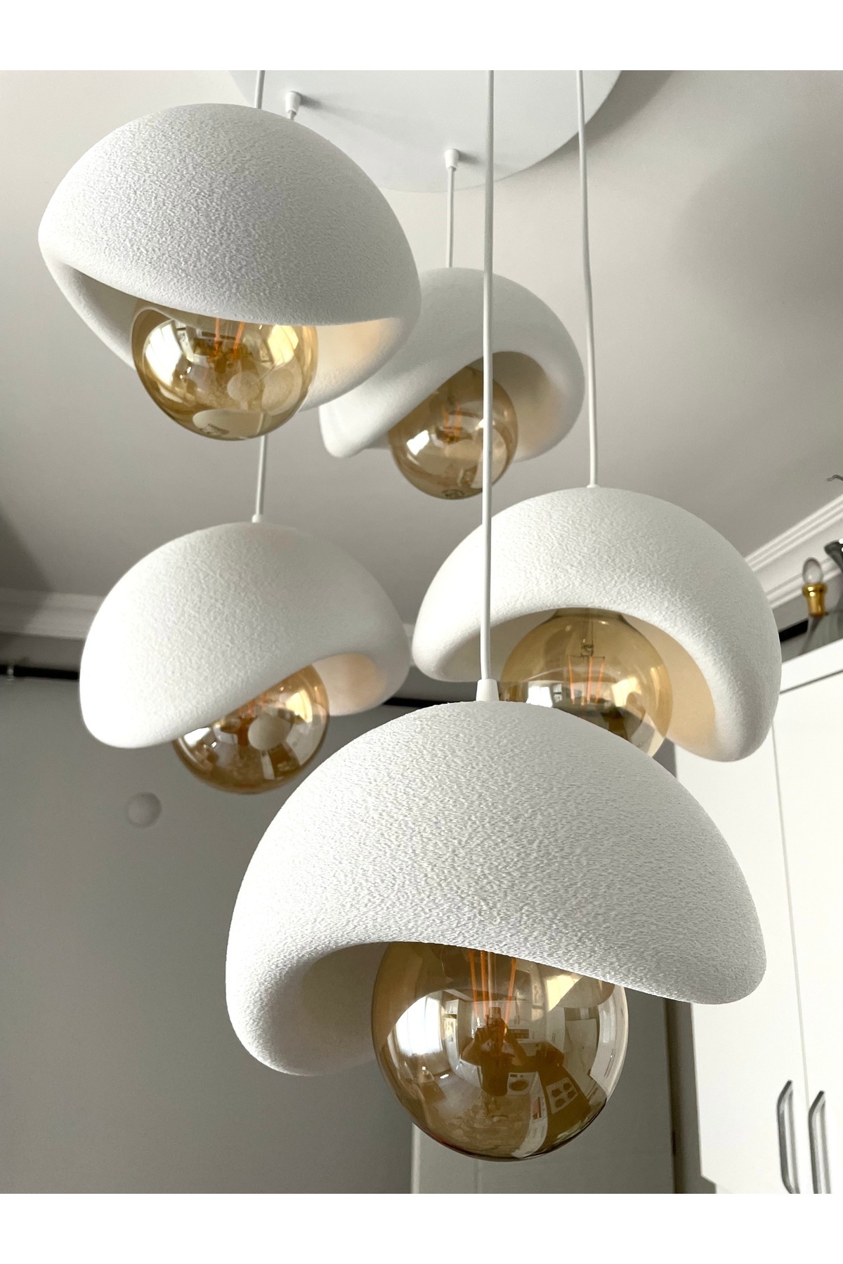 Modern 5'li Avize Beton Dokulu - Salon ve Oturma Odası İçin Şık Tasarım (AMPUL DAHİL DEĞİLDİR)
